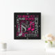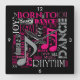 Is dancing your passion? This cool wall clock with a word cloud design says it all. Some of the words, interspersed with musical notes, are: breathe, live, love, dance, rhythm and born to dance. This version features shades of pink, gray and white on the background color of your choice. Search ID277 to see additional color options and matching products with this design.