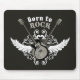 Mousepad design with crossed electric rock guitars, wings, vintage florals and slogan - Born To Rock.