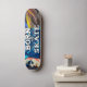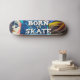 Cool skateboard featuring the wording "Born to skate" in modern graffiti white font, on a beautiful graffiti background with a girl with blue hair.