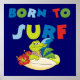 If you love surfing you'll love this alligator and surfboard Born to Surf design on surfer T-shirts, cards, stickers, mugs, tote bags, and other surfing design gear!