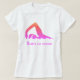 Declare your love for swimming with this tshirt. Under the image of a swimmer in shades of pink, orange and purple, are the words "Born to swim". Don't like the slogan? Then personalise it with your own words.