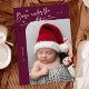 Elegant and modern Christmas theme birth announcement card featuring a hand written scrit text that says "Born under the mistletoe." This is a birth announcement card for the holiday seasons! Add your photos, birth stats, and a message! The background is cranberry.