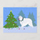 Borzoi Decorating Christmas Tree in the Forest Holiday Postcard