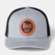 Custom Leather Patch Hat, Sytle: Adult Retro Trucker Cap, Color: Heather / Black, Shape: Circle