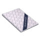 A pattern of motivational text which reads "Boss Lady CEO" in dark blue capital letters is set at a 45 degree angle on a delicate light mauve background. A ribbon of the same dark blue is laid over the pattern at the same angle, on which you can place your name (or that of the special boss lady you're giving this notebook to as a gift). You can revise both the unique typography pattern and the name on the personalization template (just watch that the pattern text isn't too long to fit the text frame).