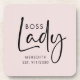 Boss Lady Logo Blush Pink Personalized Beverage Coaster... A treasured gift for a boss babe entrepreneur. If a woman in your life owns her own business, here is a thoughtful birthday or Christmas gift... a set of 6 blush pink beverage coasters with an artistic Boss Lady logo above the entrepreneur's name and the date her business was established. It's easy to revise the name and year on the personalization template.