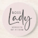 Boss Lady Logo Blush Pink Personalized Coaster