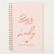 Surprise your female boss with this Boss Lady Modern Pastel Orange Script Personalized Planner. Everyone can always use a planner especially when it's a trendy modern design. Both sides are designed with a blush coral orange background. The front has "boss lady" in dark orange terracotta trendy hand written script lettering. A small pastel heart is below the text. Name is in minimalist matching letters across the lower middle.