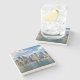 Boston skyline from waterfront stone coaster