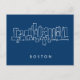 This design features a hand drawn sketch of the Boston skyline on a brown background.