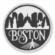 This fresh black-and-white illustration of the Boston skyline features many familiar landmarks, including the capitol building, the custom house tower, the Hancock, Old Hancock, and Prudential buildings, as well as the Zakim bridge and financial district.
