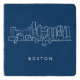 This design features a hand drawn sketch of the Boston skyline on a brown background.
