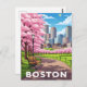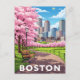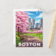 Boston skyline under blooming cherry blossoms postcard