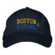 A Boston Strong typography embroidery graphic style decor on a fine casual embroidered baseball hat for yourself or for someone special on your list.