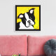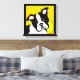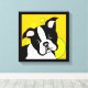 Canvas prints of Boston Terrier with yellow circles in background and black border