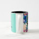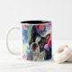 "Life is better with a Boston Terrier" mug | Boston terrier art on front. Text on back. Turquoise, blue, purple and pink colors. Great gift for dog lovers.