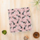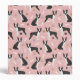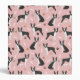 Cute Boston Terrier dogs with black and white coats sit and stand scattered dog bones and paw prints pattern.
