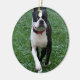 Lightweight, smooth, pure white ornament with nice sheen. Perfect size to be seen from across the room ... and to attract closer inspection! Price was great for ordering enough for the whole family! Clear, bold black design just as requested. Matches the order exactly. Just so nice!