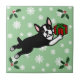 Boston Terrier Christmas 2 Cartoon Snowflakes Ceramic Tile