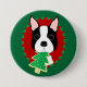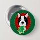 A Boston Terrier Christmas Puppy with a Christmas Tree Cookie Button! Customizable! Personalize with your text and add change the background color!