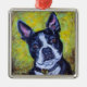 A gorgeous representation of one of America's favorite dogs! This Christmas ornament of the adorable, witty and charming Boston terrier, was designed and created from an original acrylic painting by artist Lisa Madenspacher . The painting is rich in texture and color and transfers so nicely to the ornament. What a great addition to your tree, expressing your devotion to your beloved pet, and doing it in style!