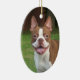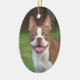 Customizable Oval Christmas Ornament with Red and White Boston Terrier