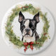Boston Terrier Christmas Wreath Festive Pup Button