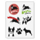 A variety of Boston Terrier temporary tattoos including cute running cartoon dogs, a dog wearing a red scarf, and a Boston Terrier silhouette. Visit Jenn’s Doodle World for more cool dog tattoos and pet lover’s designs.