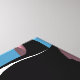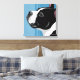 Contemporary illustrated Boston Terrier profile portrait with blue background on wrapped canvas.
