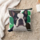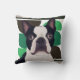 Boston Terrier Dog – Dark Green Geometric Throw Pillow
