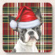 Fun coaster set for the person who loves their Boston Terrier dog. This one wears a Santa hat for a stylish approach to the holiday season, and sits cutely against a festive red and green plaid background to decorate your home or office with seasonal pet lover joy.