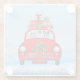 Boston Terrier Dog In Car With Santa Claus Glass Coaster