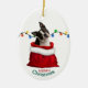 Boston Terrier Dog in Holiday Gift Bag Ceramic Ornament
