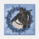 Cute Boston Terrier inside a blue floral wreath dog magnet - designs by Susan. Contact me with any design questions or requests. This photo is available on many products in my gallery. Please visit Smilin' Eyes Treasures to see more animal, flower and nature photography and digital art cards and gifts.