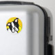 Cartoon Boston Terrier art on light orange background with yellow circles