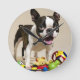 Boston Terrier Dog Playing with Toys Round Clock
