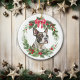 Boston Terrier Dog Red Bow Holly Wreath Ceramic Ornament
