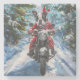 Boston Terrier Dog Riding Motorcycle Christmas Stone Coaster