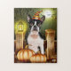 Boston Terrier Dog with Witch Hat Halloween Jigsaw Puzzle