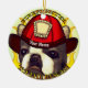 A Boston Terrier Firefighter ornament, personalized firefighters ornaments,Fire fighter apparel, Firetrucks, Firefighter t-shirts, fire fighter gifts by ArtMuvz Illustration. TO PERSONALIZE add your name or add text instead. Customize this Firefighter ornament to make it uniquely yours or give as a personalized gift. The bold design features a firefighter DOG, the symbol of the fire service. It's Perfect for firefighters, their families and friends, or anyone who wants to show their appreciation for these brave heroes