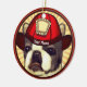 Boston Terrier Firefighter ornament, personalized firefighters ornaments, t-shirt, Fire fighter apparel, Firetrucks, Firefighter gifts by ArtMuvz Illustration. TO PERSONALIZE add your name or add text instead. Customize this Boston Terrier Firefighter ornament to make it uniquely yours or give as a personalized gift. The bold design features a firefighter DOG, the symbol of the fire service. It's Perfect for firefighters, their families and friends, or anyone who wants to show their appreciation for these brave heroes
