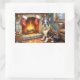 Boston Terrier Fireplace with Christmas Lights Rectangular Sticker