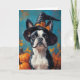 Celebrate the howling fun of Halloween with a cute Boston Terrier witch card that's sure to fetch smiles.