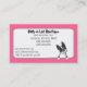 Make your business stand out among the rest with creative custom designed business cards featuring original art and design by Andie. This template showcases a Boston Terrier peeking over a thin black border. The sample background border color is pink but you can change it by selecting "edit" then "background".
