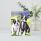 Adorable pair of black and white Boston Terrier puppies - An AI created digital watercolor art postcard