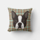 Boston Terrier Puppy Dog Tartan Plaid Throw Pillow