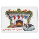 Boston Terrier Puppy Wait on Santa Fireplace