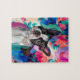 Build your own piece of art with this colorful boston terrier puzzle. Floral background in pink, blue and purple colors. Great gift for pet lovers. Available in small and big sizes. Dog puzzle