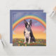 A personalized Boston Terrier memorial sympathy card with a beautiful painting of a Boston Terrier on a heavenly hill with a beautiful rainbow overhead. Symbolizing the Boston Terrier dog has passed the rainbow bridge to doggy heaven. You can personalize it with your own Boston Terrier dog's name or any other text on the back side of the card. Makes a special memorial or sympathy gift for any Boston Terrier dog lover if their dear dog has passed.