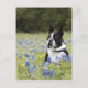 Boston Terrier sitting in a field of Blue Bonnets Postcard